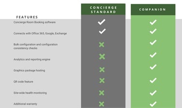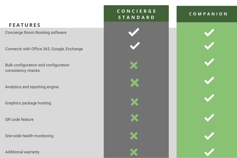 Concierge Companion is an additional component of the Concierge room booking displays solution. Companion support software is provided free of charge for the first 12 months. Read more about our Companion overview and hosting considerations. Purchase extended Companion support through our authorised reseller, find your local provider.