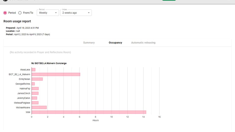 Be confident your meeting rooms are always being used fairly and efficiently by accessing daily, weekly, monthly, quarterly or yearly reports that compare room and organiser: